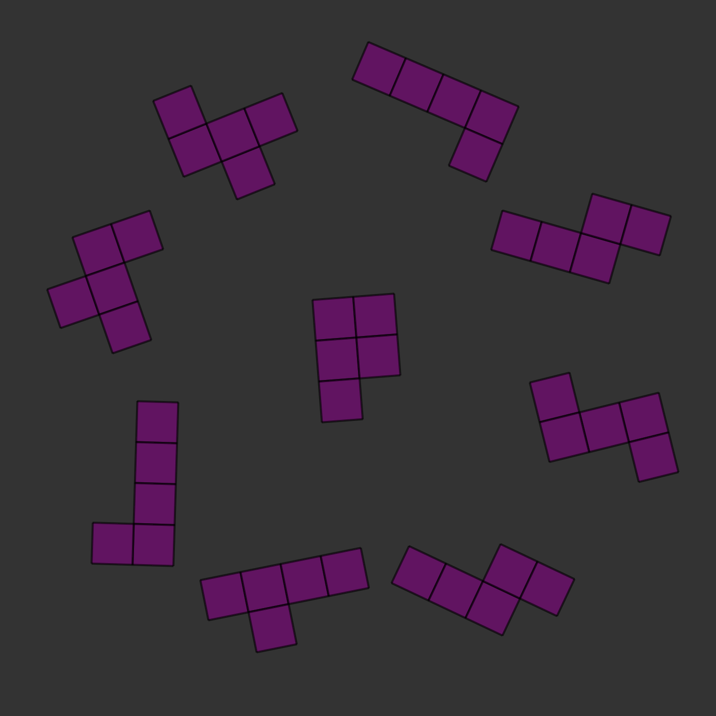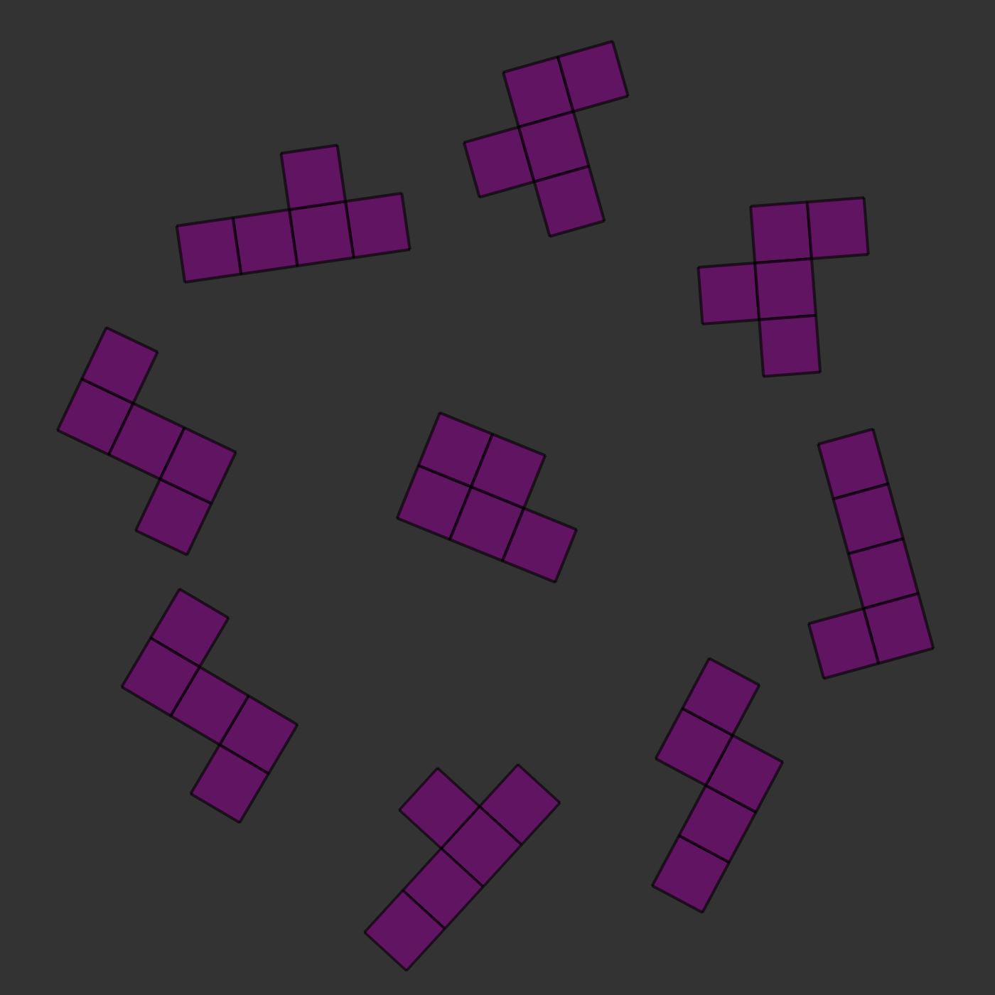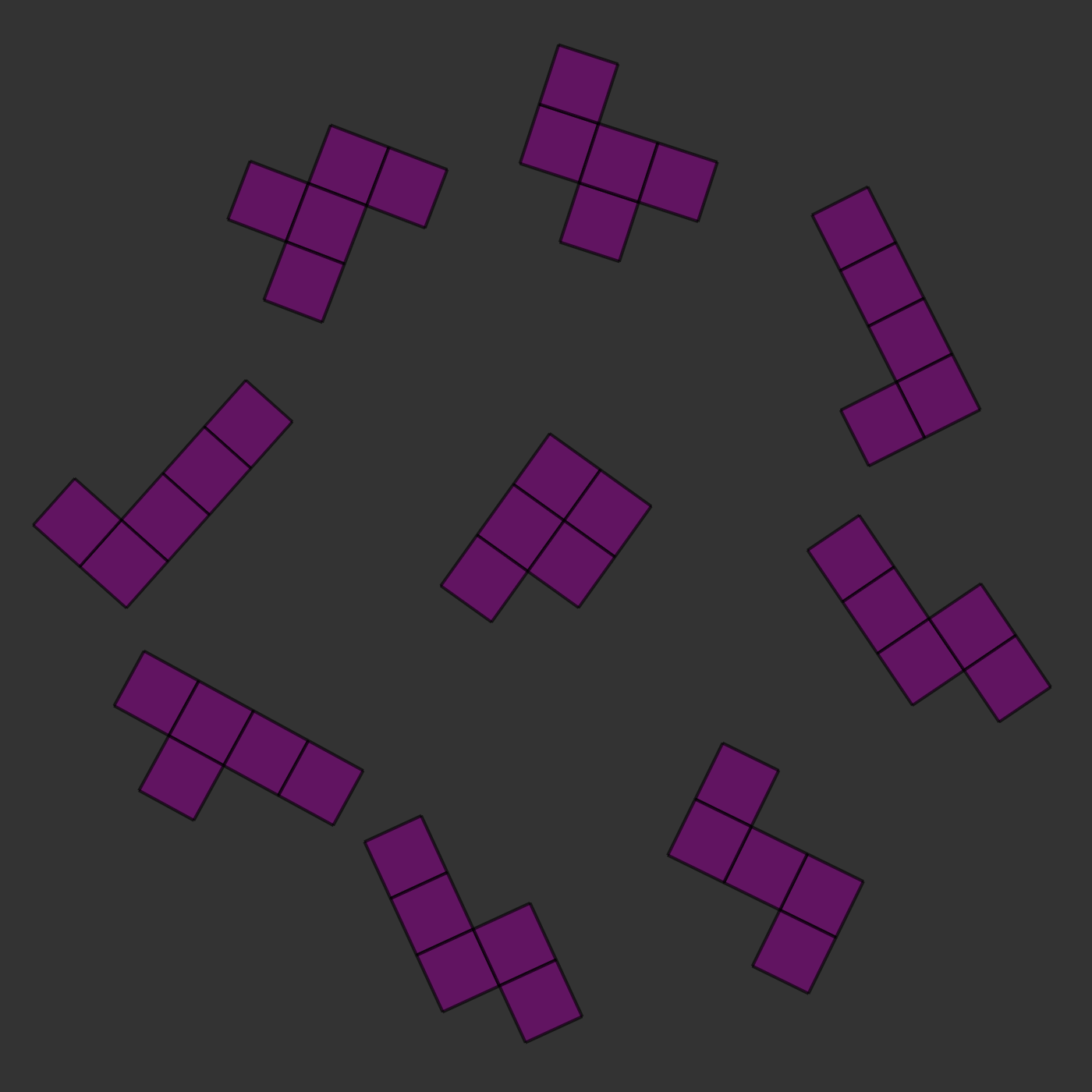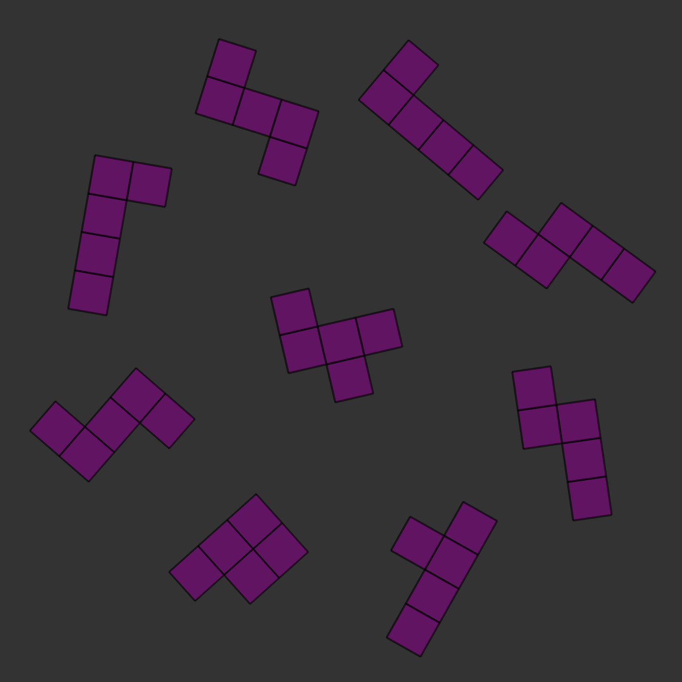 There is one twist: the two images will always be of the same kind of pieces, but they will be rotated and they will sometimes be mirror images of each other. For example, in the images below, you can see that the two central pieces are the same: if you rotated them, they would clearly be identical. In this case, the correct answer would be to press 's', for 'same'.